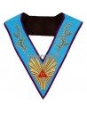 Tissus moiré bleu turquoise avec bande violet Cocarde sur pointe avec attache bijou