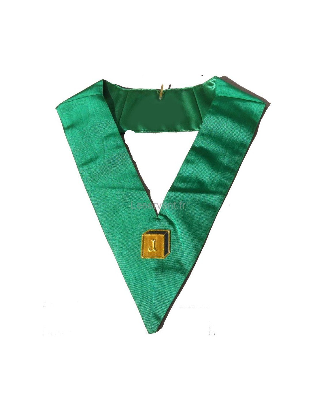 Cordon du 5ème degré du REAA Maître Parfait Ruban moiré vert Dos vert Cocarde verte sur pointe Attache pour bijou